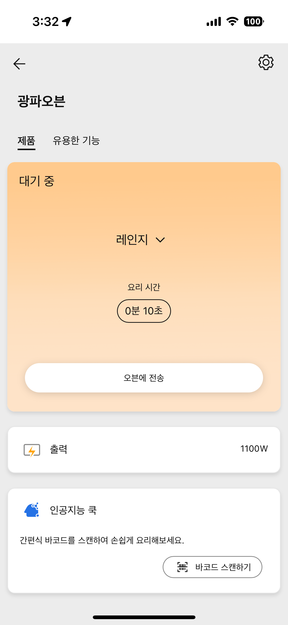 전송을 한 후에는 제품에 가서 시작버튼만 눌러주면 바로 조리가 시작된다.